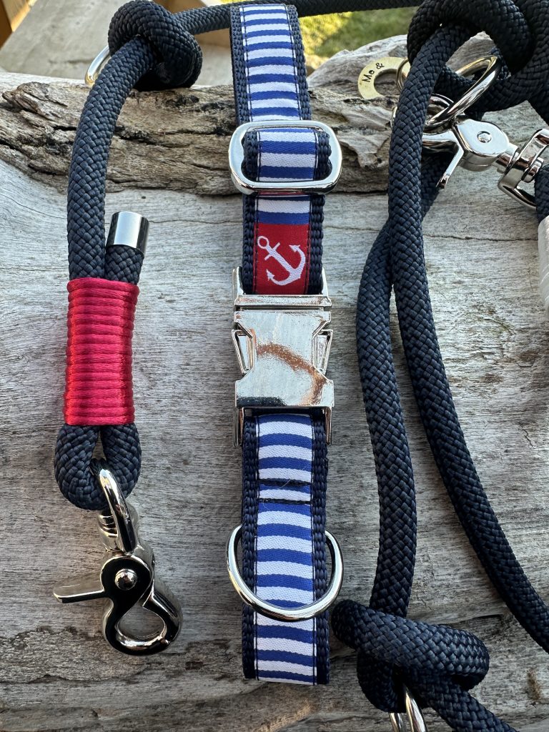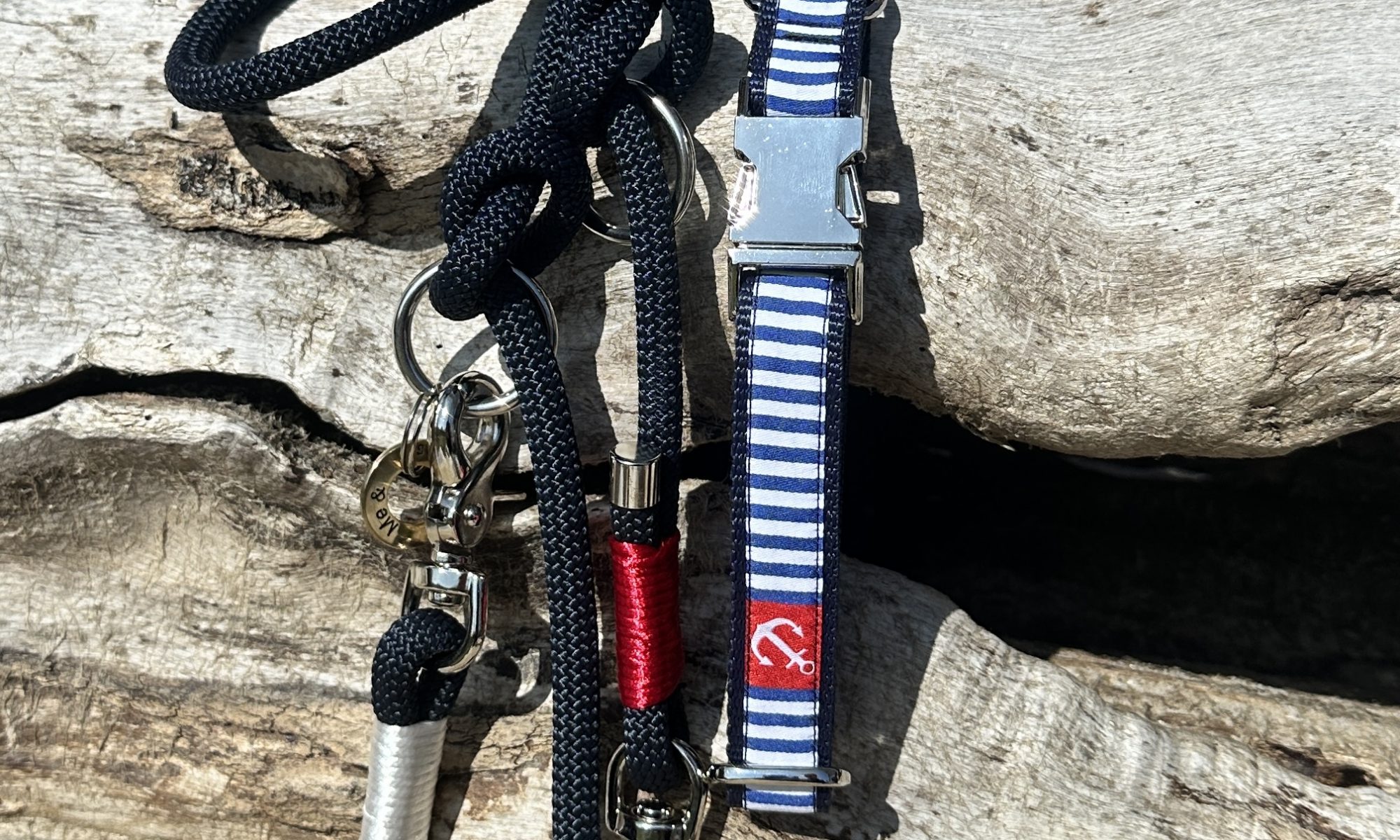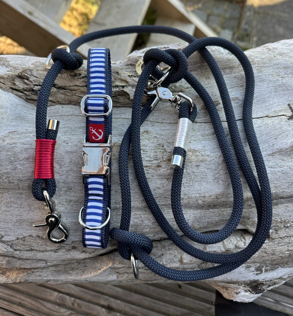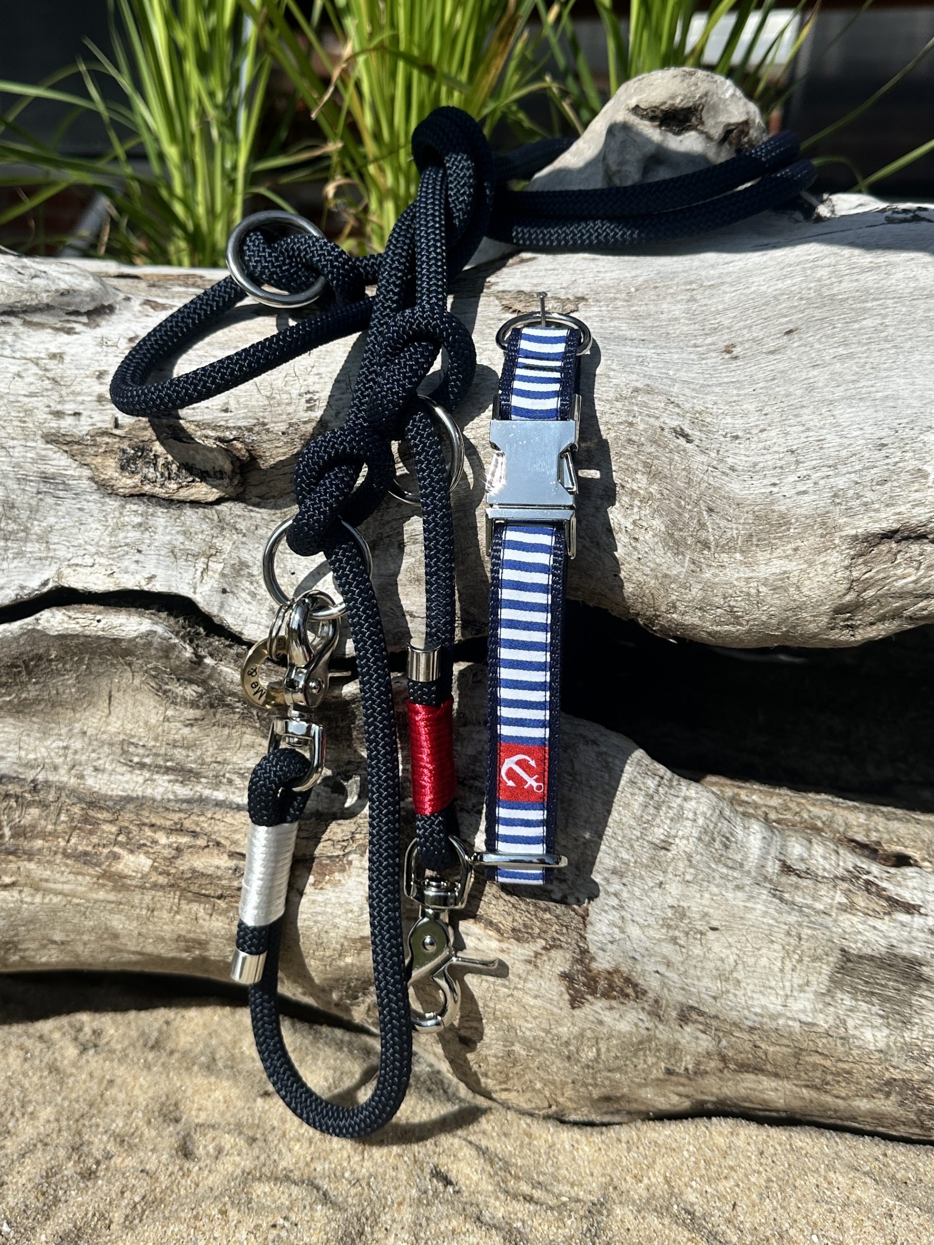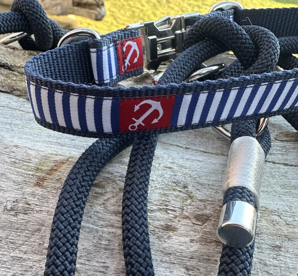 Blaue Leine mit zweifarbiger Takelung in 8mm Stärke und ca 1,80m Länge