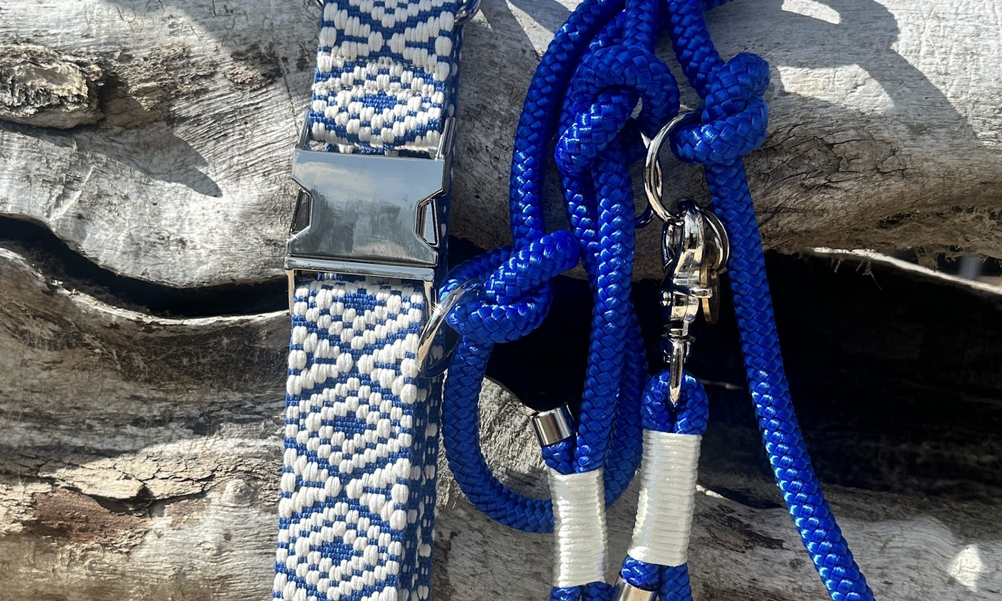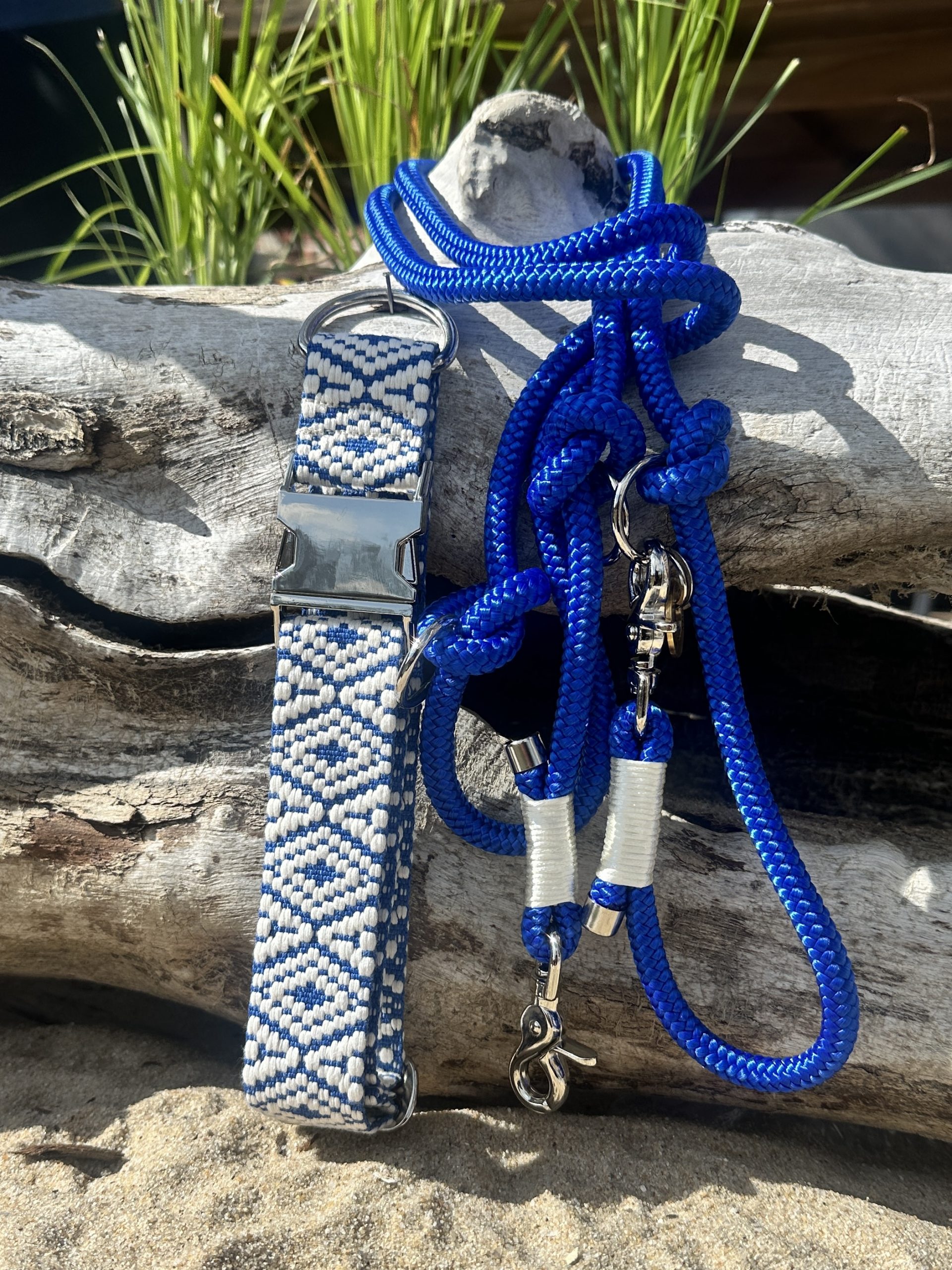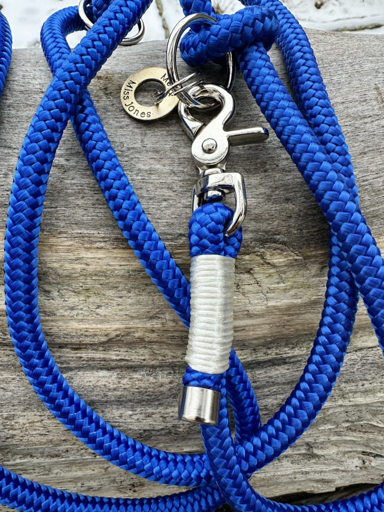 Blaue Leine in 10mm Stärke mit heller Takelung und 1,80m Länge