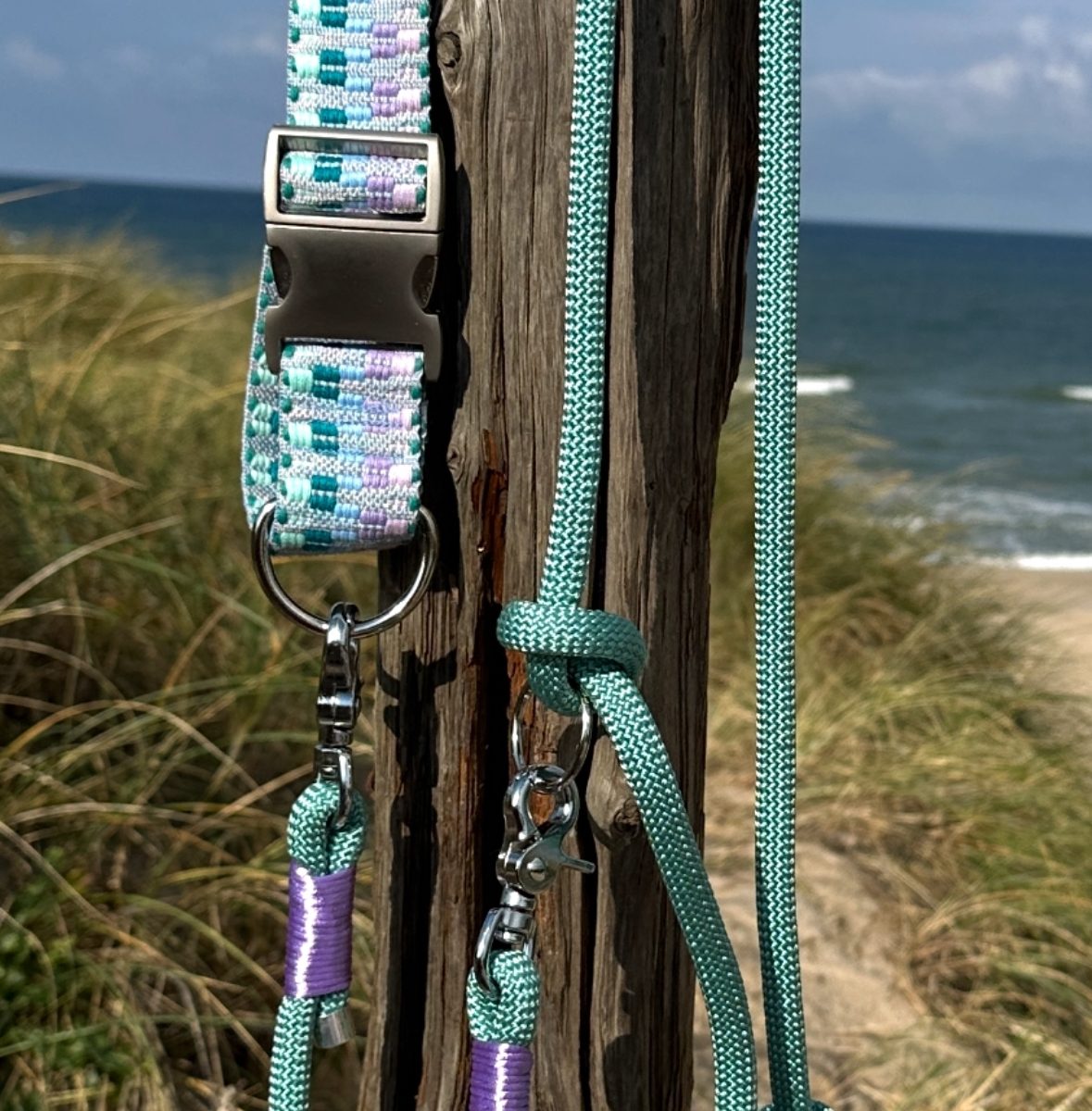 Flieder und türkis blaues Gurtband