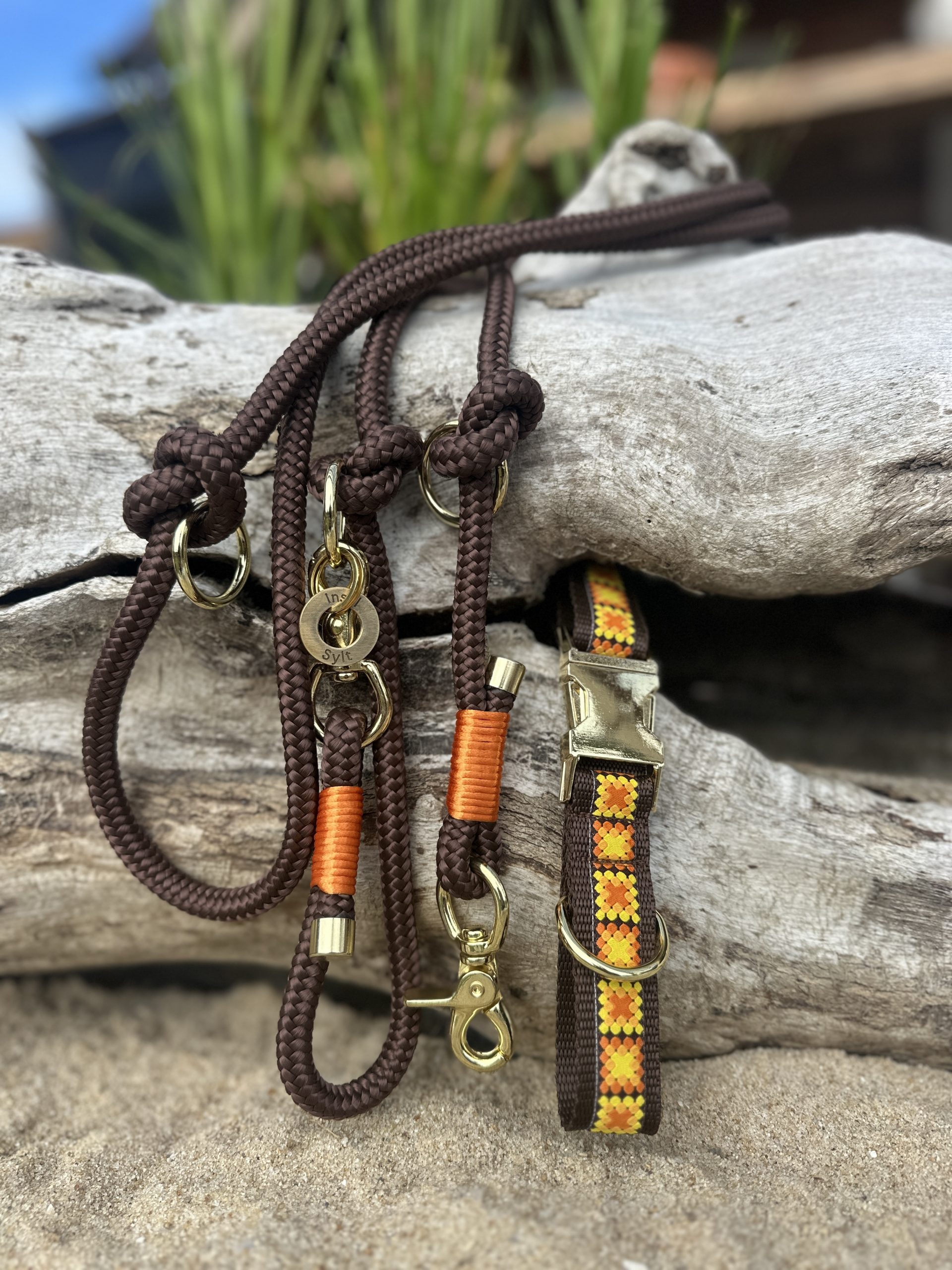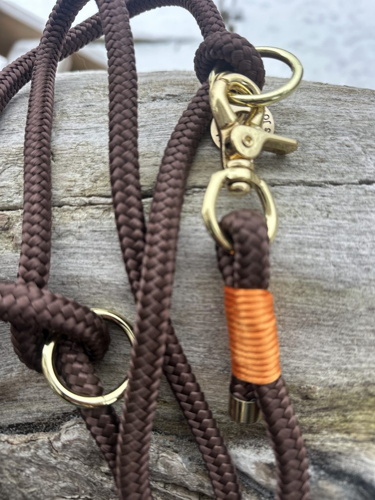 Braune Leine in 10mm Stärke mit zweifarbiger Takelung und 1,80m Länge