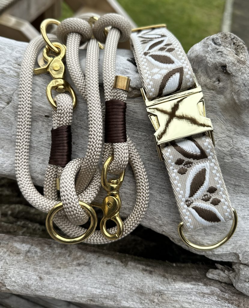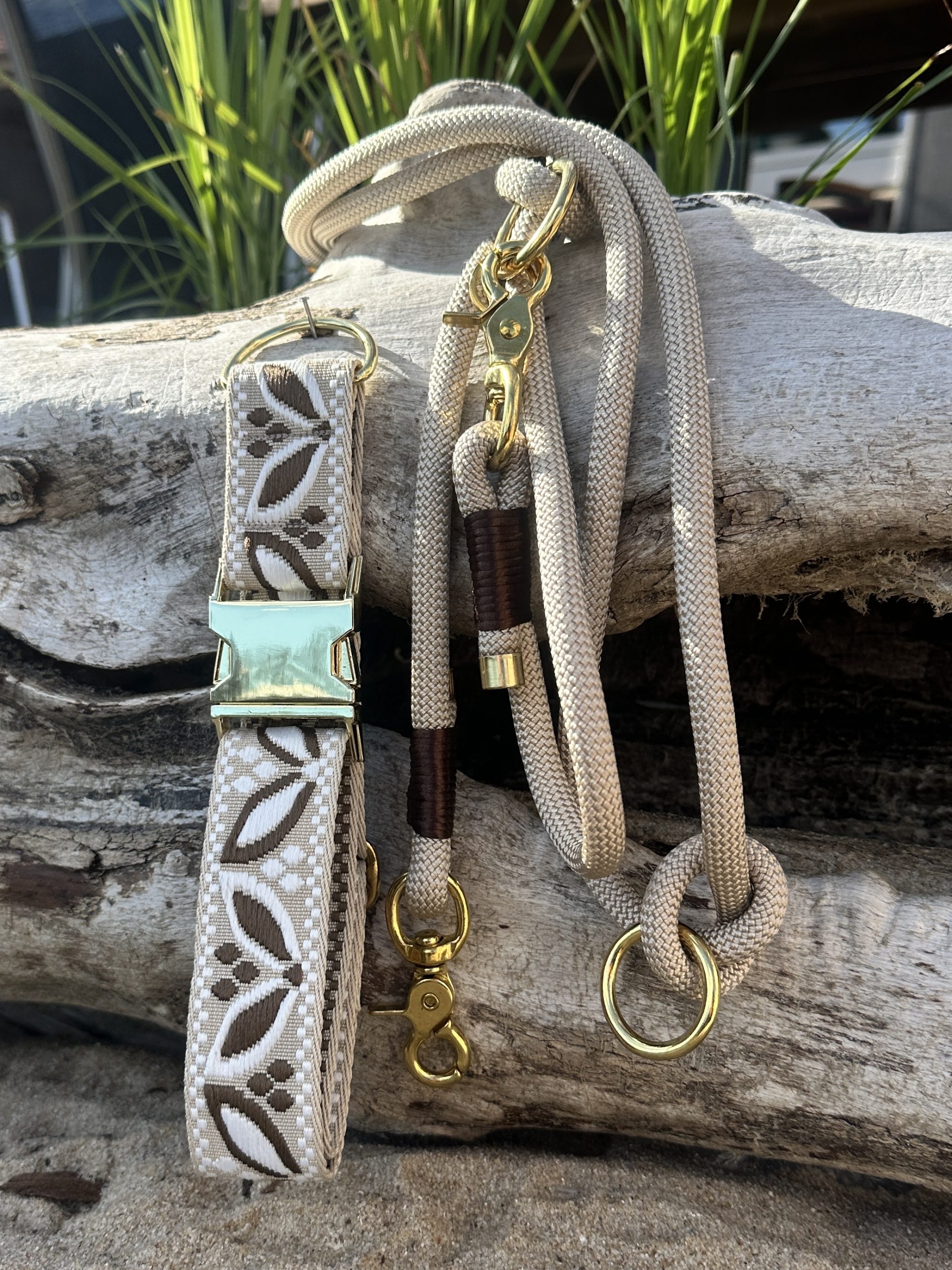 Leine in 10mm Stärke mit brauner Takelung und 1,80m Länge