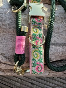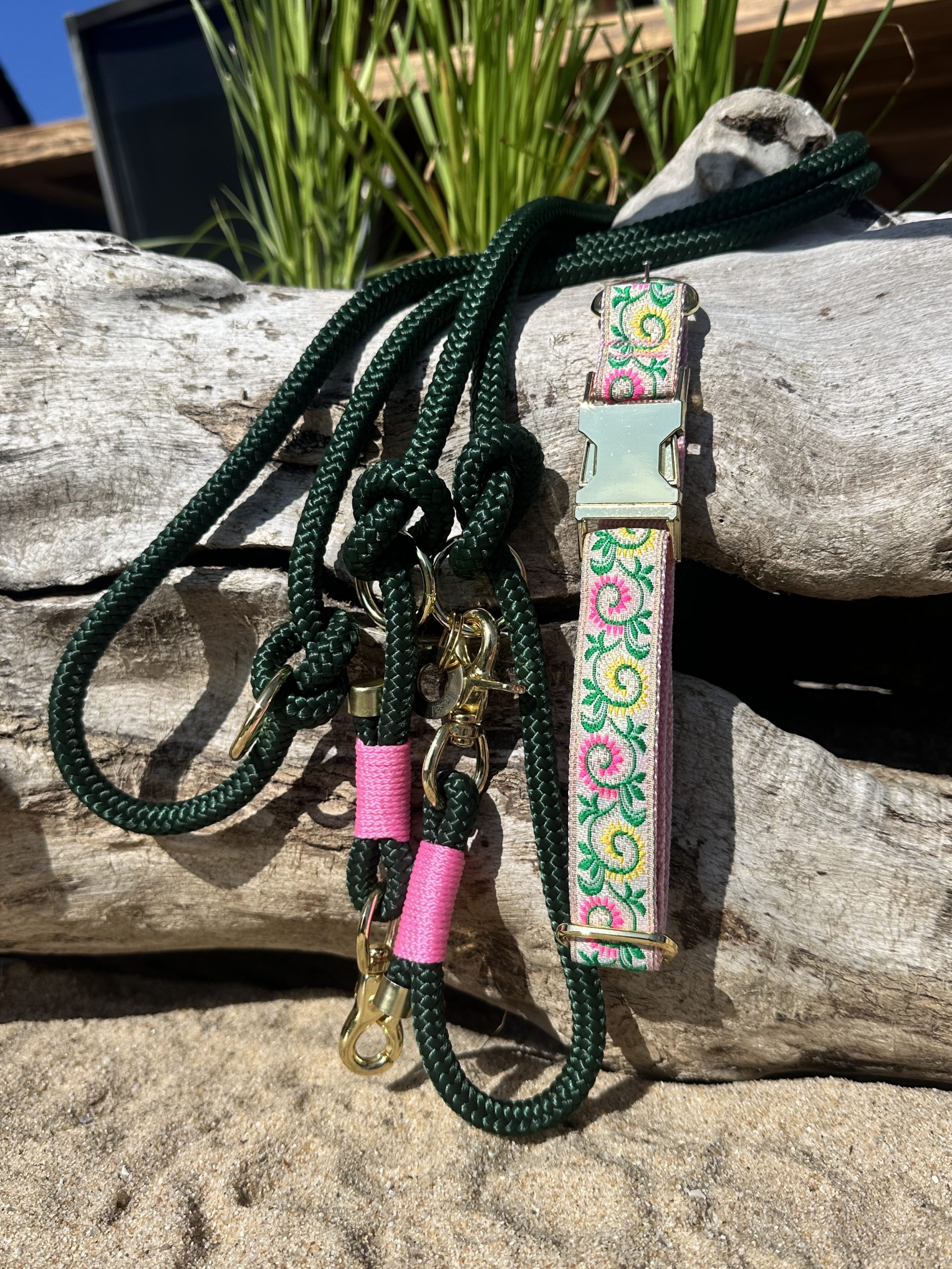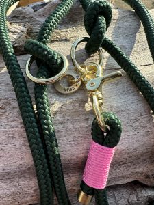 Hier mit einer grünen Leine in 10mm Stärke, pinke Takelung und 1,80m Länge