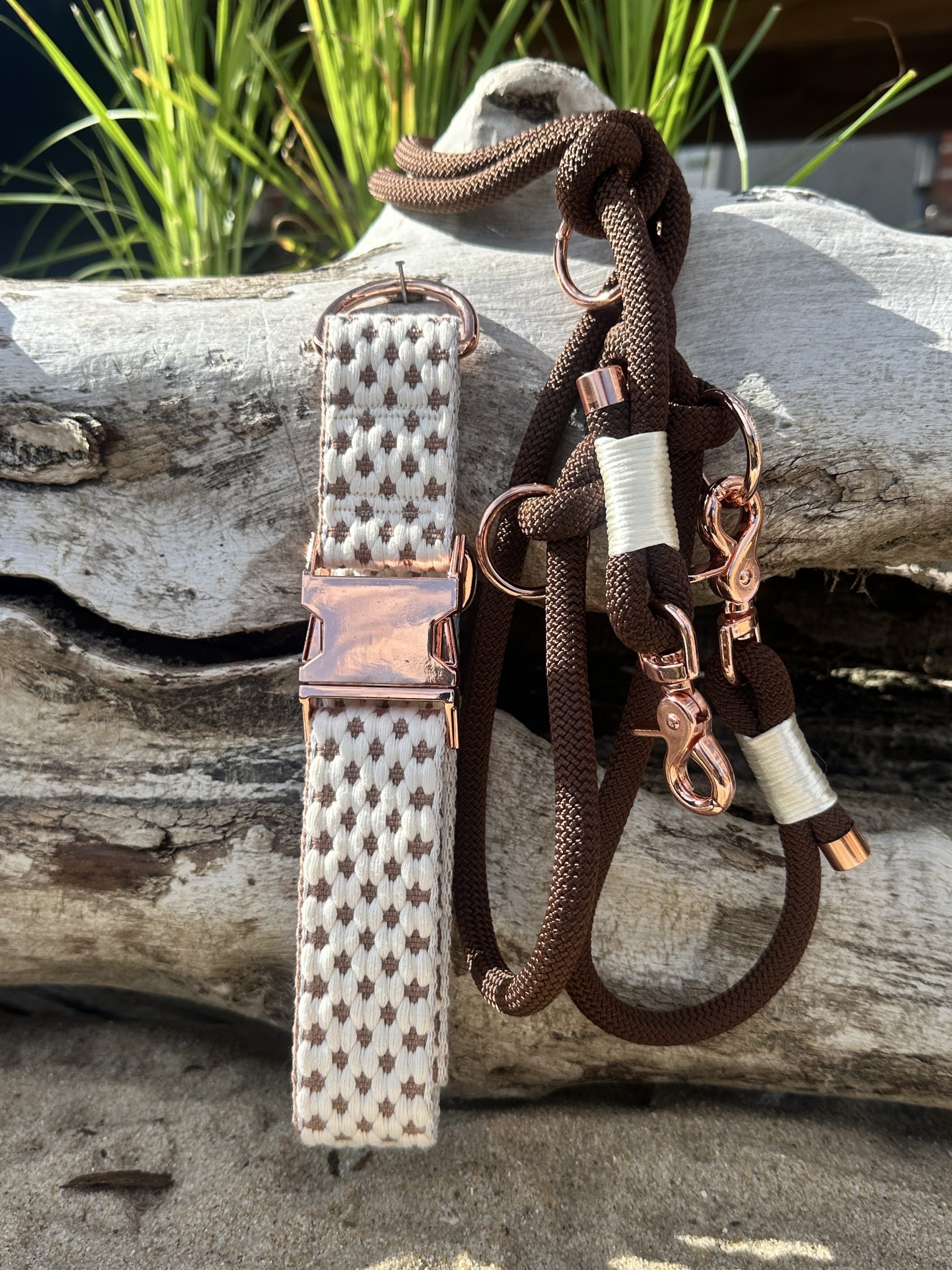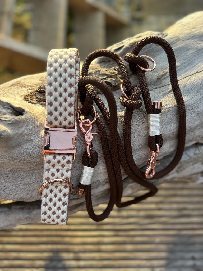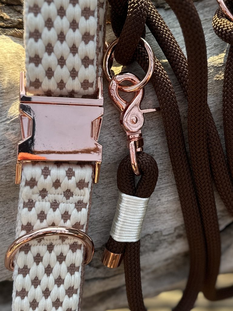 Leine in 10mm Stärke mit cremeweißer Takelung und 1,80m Länge